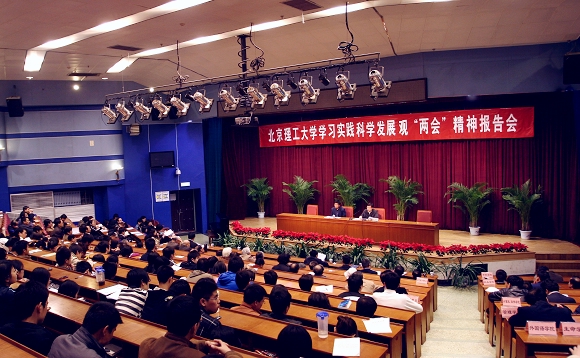 3月18日下午,我校在中心教學(xué)樓一層報告廳召開了深入學(xué)習(xí)實踐科學(xué)發(fā)展觀“兩會”精神報告會,胡海巖校長作了“兩會”精神學(xué)習(xí)報告,校領(lǐng)導(dǎo)、全體正副處級干部、離退休同志代表、學(xué)生黨員代表出席了報告會。報告會由郭大成書記主持。
