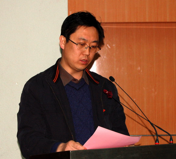 基礎(chǔ)教育學(xué)院2008級(jí)本科生左榮科同學(xué)代表獲獎(jiǎng)學(xué)生發(fā)言。他針對(duì)上學(xué)期參加給地震災(zāi)區(qū)孩子寄賀年卡活動(dòng),收到了孩子的回信這件事講述了切身體會(huì)。并表示以后要通過(guò)實(shí)際行動(dòng)將愛(ài)心和自強(qiáng)自立的精神傳播給更多的人。