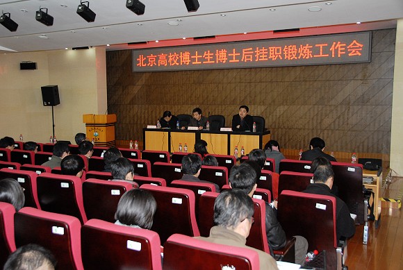 2009年3月30日下午2:30,北京高校博士生博士后掛職鍛煉工作會(huì)在我校圖書館報(bào)告廳召開。此次會(huì)議由北京市教育工委主持召開,我校研究生工作部協(xié)辦。北京市教育工委宣教處處長狄濤、副處長王達(dá)品,北京市委組織部調(diào)配處副處長李榮忠及50余所北京高校研究生工作部部長參加了會(huì)議。