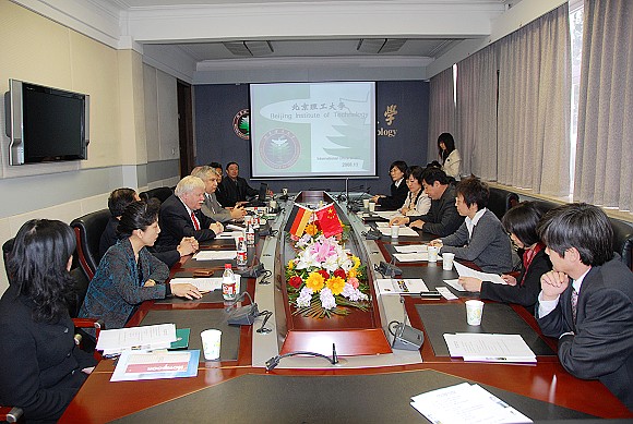 Hippler校長非常感謝郭書記的接待,他認為北京理工大學是卡爾斯魯厄大學在中國的重要合作伙伴,他非常地高興看到在過去幾十年中兩校在學生交換、教師培養(yǎng)等方面取得了豐碩的成果,希望兩校今后加強合作,并開辟更多的合作領域。Hippler校長還介紹了卡爾斯魯厄大學近期的發(fā)展情況。