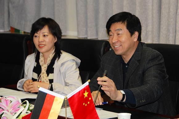 郭大成書記首先對Hippler校長訪問我校表示熱烈歡迎。郭書記回顧了兩校自建國初期開始的交流與合作情況,并向Hippler校長一行介紹了我校近期的發(fā)展情況,尤其是新學院設置和近年來我校取得的優(yōu)秀科技成果。