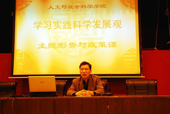 為了讓全體學(xué)生更加深入了解、學(xué)習(xí)、領(lǐng)悟、實(shí)踐科學(xué)發(fā)展觀,提高思想認(rèn)識(shí),解決實(shí)際問題,促進(jìn)學(xué)風(fēng)建設(shè),對(duì)即將步入社會(huì)或進(jìn)入更深層次研究領(lǐng)域的大三、大四和研究生從根源上做好動(dòng)員,應(yīng)對(duì)嚴(yán)峻的就業(yè)形勢(shì),提高廣大同學(xué)的科學(xué)發(fā)展和實(shí)踐的能力,根據(jù)學(xué)生工作處的統(tǒng)一安排,4月13日晚,人文學(xué)院在7號(hào)樓報(bào)告廳開展“科學(xué)發(fā)展觀與大學(xué)生健康成才”主題形勢(shì)與政策教育活動(dòng)。學(xué)院黨委副書記、副院長(zhǎng)高偉濤老師和輔導(dǎo)員賈效明老師出席并作報(bào)告,中關(guān)村校區(qū)全體學(xué)生參加了本次主題教育活動(dòng)。
