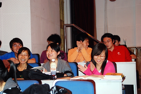 整場(chǎng)活動(dòng)持續(xù)了三個(gè)半小時(shí),穿插的提問環(huán)節(jié)讓同學(xué)們感慨良多,同時(shí)也使大家對(duì)問題的認(rèn)識(shí)程度得到大大提高。 老師們引經(jīng)據(jù)典,從老子《道德經(jīng)》到孫子的《孫子兵法》,從岳飛的《滿江紅》到毛主席的《沁園春》,諄諄教誨、字字珠璣的講解, 使頑石點(diǎn)頭;幽默風(fēng)趣、親切生動(dòng)的語(yǔ)言,更是時(shí)不時(shí)引得同學(xué)們熱烈的掌聲和歡聲笑語(yǔ)。