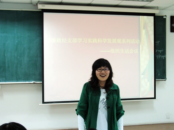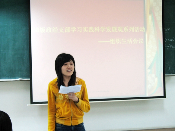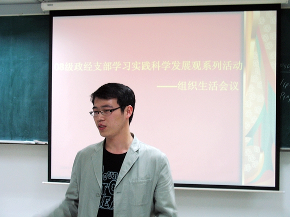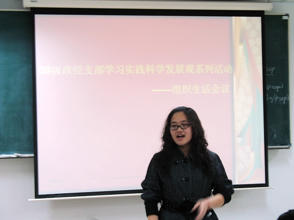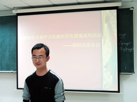 08研政經(jīng)支部學(xué)習(xí)實(shí)踐科學(xué)發(fā)展觀系列活動(dòng)——組織生活會(huì)于4月10日晚9點(diǎn)在研究生教學(xué)樓405召開,會(huì)議圍繞“如何更好地發(fā)揮學(xué)生黨員、學(xué)生干部的先鋒模范和骨干帶頭作用及如何加強(qiáng)組織自身建設(shè),更好地服務(wù)同學(xué)”主題開展。黨員、積極分子積極踴躍參加,充分體現(xiàn)了學(xué)習(xí)實(shí)踐科學(xué)發(fā)展觀的熱情和風(fēng)貌。