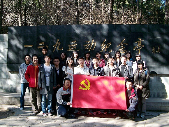 2009年 4月1日,理學(xué)院本科生06級信統(tǒng)黨支部20余人前往北京植物園參觀一二九運(yùn)動念亭。同時,同學(xué)們帶上了《科學(xué)發(fā)展觀重要論述摘編》及《毛澤東 鄧小平 江澤民 論科學(xué)發(fā)展觀》兩本小冊子,組織了黨支部的集中學(xué)習(xí)實踐科學(xué)發(fā)展觀活動。