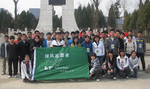 2009年4月3日,時值清明祭掃之際,機械與車輛學(xué)院綠風(fēng)志愿者協(xié)會組織舉辦了“向逝去的他們致敬”掃墓活動,組織同學(xué)前往我校良鄉(xiāng)校區(qū)附近的無名烈士墓園進(jìn)行祭掃活動,以此來重溫歷史,了解革命烈士的英雄事跡,祭奠為祖國建設(shè)付出生命的烈士們,同時回顧祖國建設(shè)六十年來的風(fēng)雨歷程,引導(dǎo)大學(xué)生弘揚愛國主義精神,加強愛國主義教育,增進(jìn)愛國主義情感。