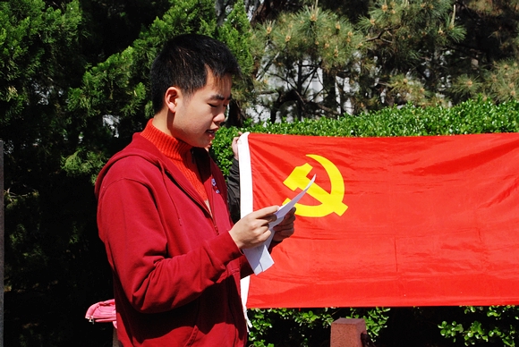 2009年4月24日星期五下午兩點(diǎn),人文社會(huì)與科學(xué)學(xué)院06級(jí)本黨支部在中心花園徐特立像前舉行了 “黨員入黨宣誓”活動(dòng),這是一次特殊而有意義的宣誓活動(dòng),這次活動(dòng)是在我黨開(kāi)展深入學(xué)習(xí)實(shí)踐科學(xué)發(fā)展觀時(shí)舉行的,科學(xué)發(fā)展觀是我黨提出的新的重大戰(zhàn)略思想,是我黨執(zhí)政理念的一個(gè)飛躍。活動(dòng)由黨支部組織委員于滿主持,支部正式黨員2名,預(yù)備黨員12名,入黨積極分子5名參加了此次活動(dòng)。