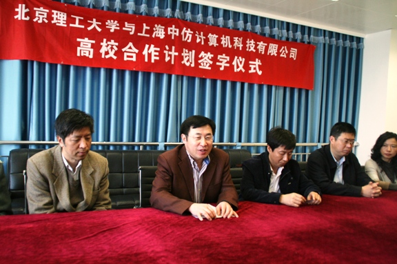 2009年4月27日,北京理工大學(xué)與上海中仿計(jì)算機(jī)科技有限公司在生命學(xué)院會(huì)議室舉行合作簽約儀式。參加本次儀式的有上海中仿科技有限公司副總經(jīng)理、運(yùn)營(yíng)總監(jiān)周少林先生,北京理工大學(xué)實(shí)驗(yàn)室設(shè)備處劉云飛副處長(zhǎng),生命學(xué)院鄧玉林院長(zhǎng)、李漢軍書記、唐曉英副院長(zhǎng)、周連景副書記副院長(zhǎng),以及我院實(shí)驗(yàn)教學(xué)中心孫智杰主任。簽約儀式由生命學(xué)院李勤副院長(zhǎng)主持。
