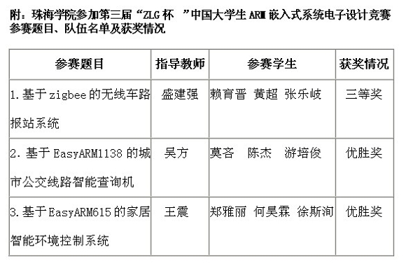 我校珠海學(xué)院計(jì)算機(jī)學(xué)院在第三屆“ZLG杯”中國(guó)大學(xué)生ARM嵌入式系統(tǒng)電子設(shè)計(jì)大賽中榮獲佳績(jī)