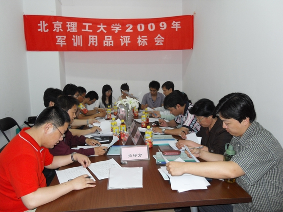 5月14日下午2:00,北京理工大學(xué)2009年軍訓(xùn)用品評標(biāo)會在10號辦公樓133會議室召開。評標(biāo)小組成員由國資處副處長谷千軍、學(xué)生處副處長楊海,團(tuán)委劉亮,基礎(chǔ)教育學(xué)院張磊、李文彪,財務(wù)處王蓉,審計室盧忱,紀(jì)委監(jiān)察室王蘭英以及4名學(xué)生代表組成。會議由谷千軍主持。