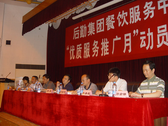 2009年5月14日下午,后勤集團(tuán)餐飲服務(wù)中心在七號(hào)樓報(bào)告廳召開了“優(yōu)質(zhì)服務(wù)推廣月”動(dòng)員大會(huì),校黨委副書記楊賓,后勤集團(tuán)黨委書記楊學(xué)洲,后勤集團(tuán)總經(jīng)理李晉平,后勤集團(tuán)常務(wù)副總經(jīng)理巫后新,校學(xué)生會(huì)秘書長(zhǎng)張春程,后勤集團(tuán)總經(jīng)理助理、餐飲服務(wù)中心主任孫金鋒及餐飲中心近300名員工參加了大會(huì)。