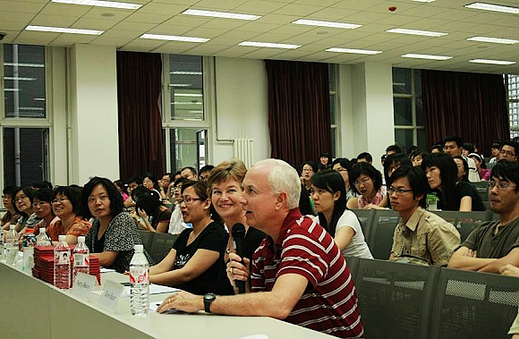 提問環(huán)節(jié)由資深外教——來自美國的Raisor夫婦——擔(dān)綱,兩位夫婦非常受學(xué)生歡迎,提問簡潔而到位,現(xiàn)場問答環(huán)節(jié)成了此次演講比賽的一個亮點。