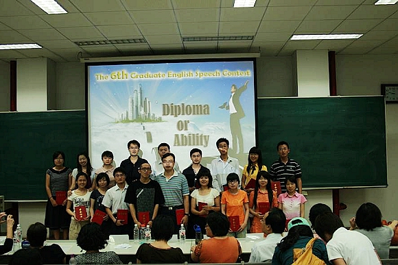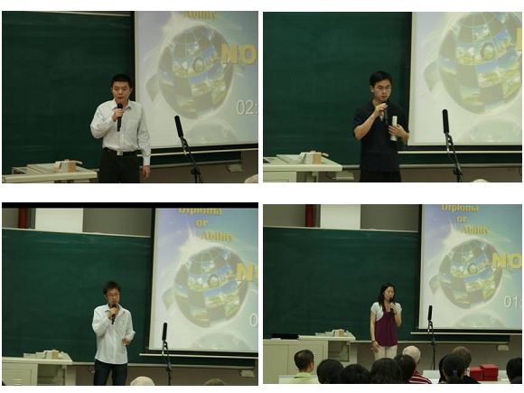 本次演講比賽決賽分為定題演講和回答問題兩個部分。定題演講的題目為“Diploma or Ability”(文憑還是能力?),時間為3分鐘。這個話題是經(jīng)過老師們充分醞釀選出的題目。在當(dāng)前復(fù)雜的社會和國際形勢下,這個話題很容易在研究生群體中產(chǎn)生共鳴和思考。