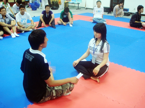 舞蹈療法是一種包含著深刻心理學(xué)原理的團(tuán)體活動,活動本身運(yùn)用了如引導(dǎo),鼓勵,冥想,接觸性安慰,釋放等方法幫助活動參與者緩解壓力,達(dá)到身心和諧的狀態(tài)。整個活動長達(dá)兩個小時,包括游戲,樂曲欣賞,雙人互動,分享等環(huán)節(jié),既有蒙眼過障礙這樣有趣的游戲環(huán)節(jié),又有小組分享這樣的心靈啟迪活動。整個活動的各個環(huán)節(jié)或靜或動,看似隨意而為,實(shí)則是經(jīng)過精心設(shè)計(jì),完全符合人的心理狀態(tài)變化特點(diǎn)。而從現(xiàn)場氣氛來看,社會工作專業(yè)的同學(xué)也獲得了活動參與者很高的評價。