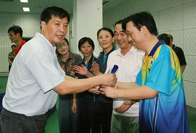 2009年9月24日,由校工會舉辦的迎國慶60周年全校教職工乒乓球比賽,在體育文化綜合館再次拉開戰(zhàn)幕。校黨委副書記、工會主席侯光明出席開賽儀式,并發(fā)表了熱情洋溢的講話,隨后,侯光明和后勤集團黨委書記楊學(xué)洲為比賽開球,為期兩天、由24支代表隊參加的團體比賽正式開始。