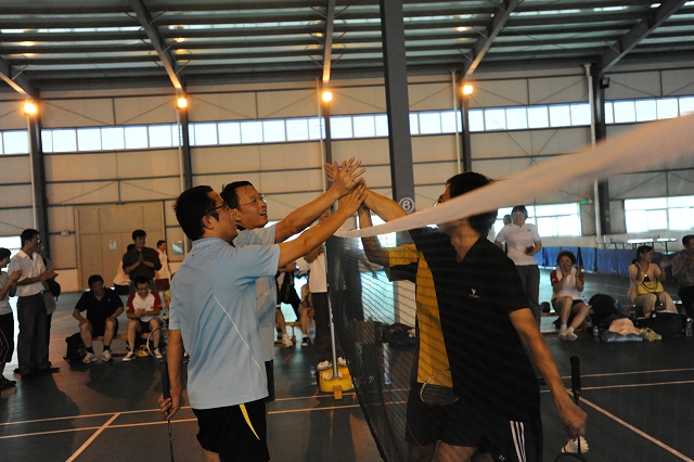 在混合團(tuán)體項(xiàng)目中教職工之間的鼓勵(lì)、吶喊、助威,是教職工團(tuán)結(jié)的象征, 讓我們?cè)僖淮卧忈屃藞F(tuán)結(jié)合作的含義,感受到了團(tuán)結(jié)合作的力量。在各隊(duì)之間比賽中,充分體現(xiàn)了友誼第一比賽第二的體育精神。這既是一次比賽,又是一種交流,是友誼的傳遞。