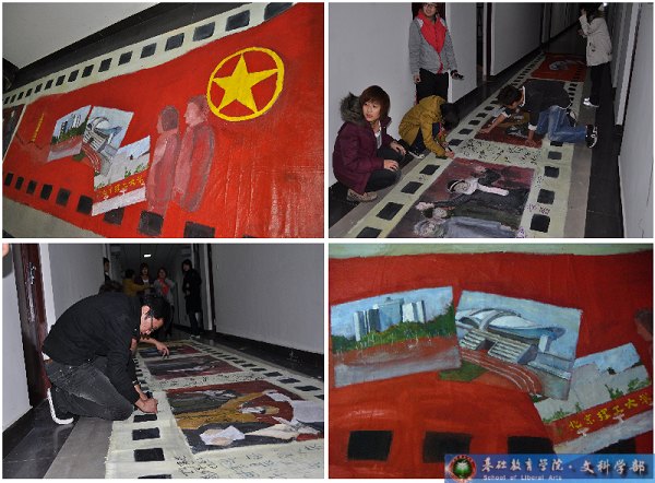 藝術(shù)設(shè)計09級三個團支部,歷時一個月創(chuàng)作了以一二九運動為主題的手繪長卷,畫卷長12.9米,屆時將在一二九紀念展中展出,同學(xué)們以其稚嫩的筆觸表達了當(dāng)代青年學(xué)生的愛國熱情與赤子忠心。