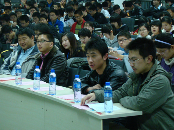 接下來(lái),2007級(jí)優(yōu)秀學(xué)長(zhǎng),全國(guó)大學(xué)生信息安全競(jìng)賽二等獎(jiǎng)獲得者劉丹、2009年全國(guó)數(shù)學(xué)建模一等獎(jiǎng)獲得者王飛和2009年全國(guó)計(jì)算機(jī)博弈大賽二等獎(jiǎng)獲得者唐志峰分別對(duì)各自參加的學(xué)科競(jìng)賽談了自己的獲獎(jiǎng)感受,親授參賽經(jīng)驗(yàn),也為同學(xué)們提出寶貴的參賽建議。