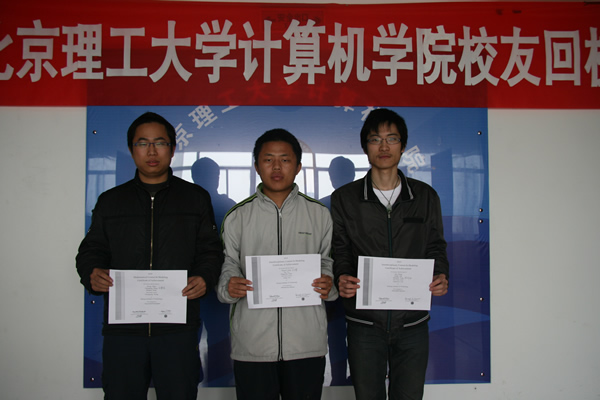 計(jì)算機(jī)學(xué)子在CUMCM2009、MCM2010大賽中連創(chuàng)佳績(jī):繼2009年全國(guó)大學(xué)生數(shù)學(xué)建模大賽中獲一等獎(jiǎng)3人次,二等獎(jiǎng)1人次后,又在2010年全美大學(xué)生數(shù)學(xué)建模大賽中獲一等獎(jiǎng)1人次,二等獎(jiǎng)1人次,成功參賽獎(jiǎng)1人次。“計(jì)算機(jī)*創(chuàng)新”已經(jīng)成為一句嘹亮的口號(hào),作為一代代計(jì)算機(jī)人傳承的信念,永遠(yuǎn)激勵(lì)著我們執(zhí)著地追求著!秉承“自信 激情 協(xié)作 創(chuàng)新”的理念,計(jì)算機(jī)學(xué)子抒寫(xiě)著精彩和輝煌!