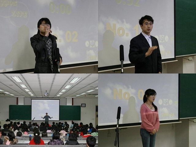 2009年4月28日晚,由外國語學(xué)院承辦的北京理工大學(xué)第七屆研究生英語演講比賽決賽在研究生樓301室成功舉行。經(jīng)過前期初賽的激烈角逐最終有15名同學(xué)進(jìn)入本次決賽。本次演講比賽決賽分為定題演講和回答問題兩個(gè)部分,定題演講的題目為“Low Carbon Life”。在當(dāng)今全社會號召低碳生活,創(chuàng)建節(jié)約型社會的理念下該題目具有很強(qiáng)的現(xiàn)實(shí)意義。不但能提高學(xué)生的英語運(yùn)用水平,更加倡導(dǎo)、宣傳了低碳生活的理念,促進(jìn)學(xué)生樹立環(huán)保觀念,加強(qiáng)低碳生活的意識。