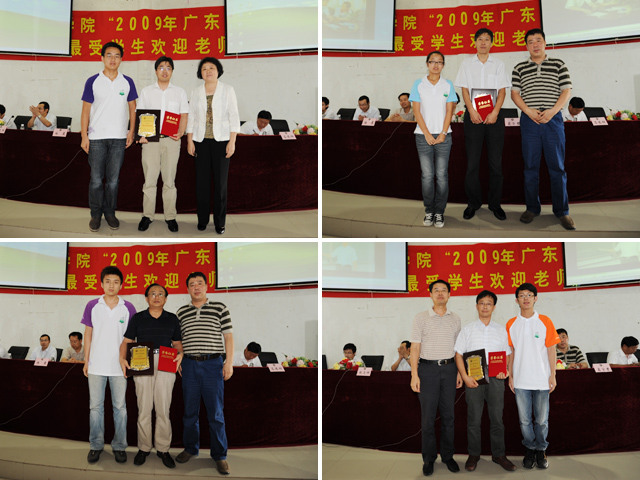 悠揚的背景音樂響起,大屏幕的畫面里圖文并茂地映出每位獲獎教師孜孜以求、誨人不倦、辛勤工作的場景,學生代表滿懷深情地簡短介紹了每一位獲獎教師的優(yōu)秀成績,宣讀珠海學院2009年“最受學生歡迎教師”評選活動獲獎教師名單,分別是文法學院戴志國老師和傅思泉老師、基礎部孫洪波老師、管理學院鄭俊生老師、基礎部張文國老師、計算機學院李書濤老師和畢秀麗老師、外語學院胡琳娜老師、化工學院祁景玉老師、管理學院盛小豐老師。獲獎教師依次走上臺前,與頒獎領導和學生握手致謝,學院領導和學生代表分別為每位獲獎教師頒發(fā)獲獎證書和獎牌,并合影留念。