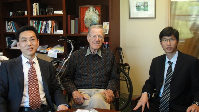 劉云教授(左)、Henry Rowen教授(中)、博士生葉選挺(右)合影