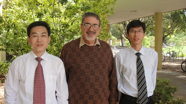 劉云教授(左)、Richard Zare教授(中)、博士生葉選挺(右)合影