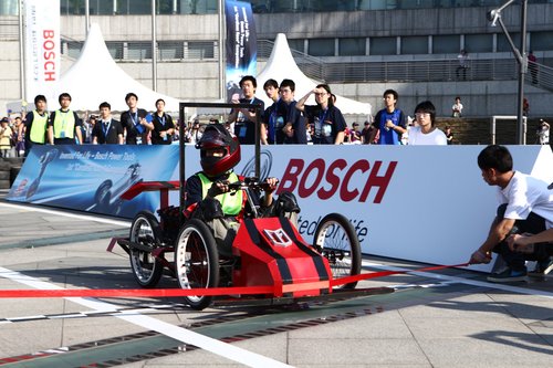 該項比賽是由德國BOSCH公司首次在亞洲舉辦的車輛創(chuàng)新設計賽事,由機械與車輛學院汽車電子技術創(chuàng)新工作室負責組織我校參賽。賽車采用博世公司新一代無線電鉆作為動力,參賽隊員從車輛的設計、制圖、加工到安裝、調(diào)試,全部獨立完成。經(jīng)過兩個月的緊張設計和制作,完成賽車準備,經(jīng)組委會對賽車動力性、操控性和安全性的全面評估,獲準進入在上海舉辦的總決賽??倹Q賽中,我校參賽隊與來自北京航天航空大學、上海交通大學等高校的參賽隊競爭激烈,最后我校“極鋒”車隊登頂冠軍,“飛豹”車隊獲得亞軍,此外“鋒行”車隊獲得最佳設計獎。