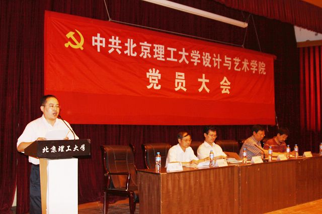 2010年6月11日下午,中共北京理工大學設(shè)計與藝術(shù)學院黨員大會在七號樓報告廳召開。黨委組織部部長趙粵生、設(shè)計與藝術(shù)學院書記楊海濱、副院長楊建明、副院長徐其敏、副書記副院長叢磊及全院300多名師生黨員參加了此次大會。