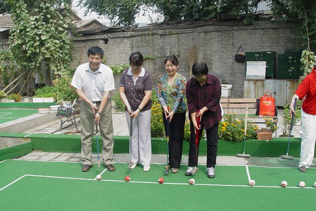 最后,侯光明和海淀區(qū)老年體協(xié)、門協(xié)領(lǐng)導們?yōu)楸崩砉らT球場啟用開球,健康杯北京理工大學老年門球賽正式開賽。