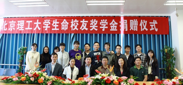2010年9月,適逢母校北京理工大學(xué)七十周年華誕之際,生命學(xué)院全體2007屆本科畢業(yè)生,用每人20元的方式共同捐贈設(shè)立北京理工大學(xué)“生命校友獎(jiǎng)學(xué)金”,拋磚引玉,希望能與生命學(xué)院全體校友一道,以年度捐款等方式,關(guān)注母校和學(xué)院的發(fā)展建設(shè)。