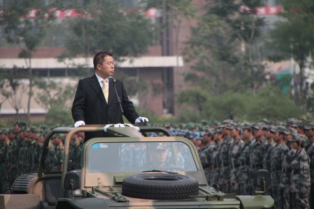 閱兵式結(jié)束后,侯光明副書記宣讀了《北京理工大學(xué)2010年學(xué)生軍訓(xùn)嘉獎令》,表彰了在軍訓(xùn)過程中涌現(xiàn)出的一批先進(jìn)單位和優(yōu)秀個人。最后,楊海對2010級新生的軍訓(xùn)成績作出了肯定,并鼓勵同學(xué)們繼續(xù)努力,在未來的道路上披荊斬棘、以理工學(xué)子傲人的脊梁,肩負(fù)起黨和人民賦予的光榮使命,成為祖國合格的建設(shè)者和可靠的接班人。