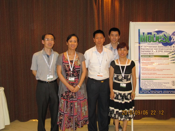 2010年9月6日至9日由國際“聚合物改性降解與穩(wěn)定學(xué)會(huì)(MoDeSt Society)”主辦的第6屆聚合物改性、降解與穩(wěn)定性(MoDeSt)國際會(huì)議在希臘首都雅典舉行。我校材料學(xué)院楊榮杰教授帶領(lǐng)3名教師及一名博士研究生等一行5人參加了本次會(huì)議。楊榮杰教授是本次會(huì)議顧問委員會(huì)成員及分會(huì)場(chǎng)主席,作了題為“Effect of sepiolite on combustion and thermal behaviours of intumescent flame-retardant polypropylene(海泡石對(duì)膨脹阻燃聚丙烯燃燒及熱降解行為的影響)”的學(xué)術(shù)報(bào)告,取得了良好的效果。
