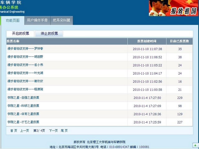 機(jī)械與車輛學(xué)院“學(xué)院之星”活動(dòng),學(xué)院團(tuán)委一年舉辦一次的評(píng)優(yōu)活動(dòng)。該項(xiàng)評(píng)選重在表現(xiàn)在校學(xué)生們的多樣生活,突出其個(gè)性化發(fā)展,引導(dǎo)優(yōu)秀學(xué)生將自己的特長(zhǎng)特點(diǎn)投入到為廣大同學(xué)服務(wù)中來,真正成為廣大同學(xué)的知心朋友。本屆活動(dòng)中,共有來自各個(gè)專業(yè)、各個(gè)年級(jí)的51名同學(xué)報(bào)名參選,經(jīng)過材料初審,確定了23名同學(xué)作為晉級(jí)下一輪的候選人。為了帶動(dòng)更多同學(xué)的關(guān)注、支持和監(jiān)督,學(xué)院針對(duì)此23人進(jìn)行了網(wǎng)絡(luò)實(shí)名投票,根據(jù)投票在各方面選出2名進(jìn)入決賽的同學(xué),因此也保證了“學(xué)院之星”的群眾基礎(chǔ)。