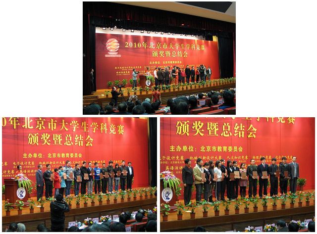 經(jīng)過歷時(shí)半年的初賽準(zhǔn)備及各高校自行組織的層層選拔,第二屆北京市大學(xué)生化學(xué)實(shí)驗(yàn)競(jìng)賽由來自北京大學(xué)、北京師范大學(xué)、北京理工大學(xué)、北京航空航天大學(xué)等24所高校的80只參賽隊(duì)。2010年11月中旬各參賽隊(duì)提交實(shí)驗(yàn)項(xiàng)目指導(dǎo)書、創(chuàng)新點(diǎn)說明和20分鐘實(shí)驗(yàn)視頻,收到的參賽作品中有部分屬于國家級(jí)或北京市創(chuàng)新項(xiàng)目。2010年12月19日,各參賽隊(duì)進(jìn)行的現(xiàn)場(chǎng)答辯,最終代表我校參賽的4只隊(duì)伍全部獲獎(jiǎng):一等獎(jiǎng)一項(xiàng);二等獎(jiǎng)一項(xiàng);三等獎(jiǎng)兩項(xiàng)。
