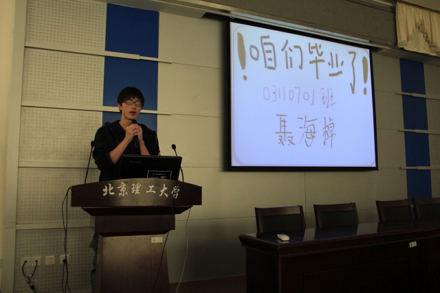 在答辯過(guò)程中,聶海棹同學(xué)說(shuō)“進(jìn)校時(shí),我的簡(jiǎn)歷上還只有名字和星座,通過(guò)四年的努力,我已將我的簡(jiǎn)歷充實(shí)得滿滿的,每一條都是我自己親力躬行的”;郭陽(yáng)同學(xué)將自己成績(jī)進(jìn)步的數(shù)據(jù)進(jìn)行對(duì)比,并在最后飽含深情的說(shuō)“別了,北理工;別了,我的青春”;王文超同學(xué)追求的紐約夢(mèng);王若婷同學(xué)所說(shuō)的“最大學(xué)”;高峰同學(xué)表達(dá)的對(duì)班級(jí)、對(duì)學(xué)校的懷念;董路寧同學(xué)的拾貝,這些都引起了同學(xué)們的共鳴,獲得了理解與鼓勵(lì)的掌聲。