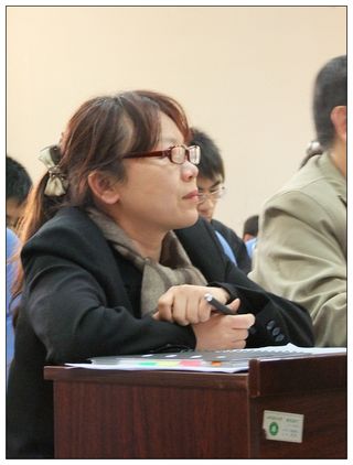 主持人進行了簡短的活動介紹之后,答辯正式開始。各位同學(xué)精心準備了答辯的PPT,滿懷感情的進行了展示。比較別開生面的一點就是會議進行的方式,可以看到會場前的的桌上放了一盒小紙條,每個紙條描述了一位同學(xué)的特征,由主持人抽取第一張紙條讓大家猜來決定由誰來進行演講,之后每位演講的同學(xué)都由上一位演講的同學(xué)來抽取,這種方式不僅活躍了氣氛,使會議充滿了有別于以往的趣味,也使得每個人都能聽到他人對自己的評價,意義也十分難得。