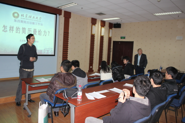 3月17日,“笑迎職場(chǎng)”系列活動(dòng)之簡(jiǎn)歷診斷坊在我校中關(guān)村校區(qū)唯實(shí)報(bào)告廳舉辦,此次活動(dòng)由機(jī)械與車輛學(xué)院就業(yè)指導(dǎo)中心主辦、機(jī)械與車輛學(xué)院學(xué)生會(huì)承辦。到場(chǎng)的有主講張大志先生、學(xué)校就業(yè)辦劉博聯(lián)老師、機(jī)械學(xué)院就業(yè)指導(dǎo)中心董倩倩老師以及各位積極報(bào)名參加活動(dòng)的同學(xué)。