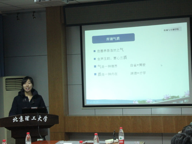 在精英論壇活動中也涌現(xiàn)出了很多優(yōu)秀的學(xué)生。在“學(xué)生干部的領(lǐng)導(dǎo)氣質(zhì)”子論壇上,來自機(jī)械與車輛學(xué)院工業(yè)工程二班的陳婧同學(xué),就從個(gè)人領(lǐng)悟出發(fā),詳細(xì)闡述了何謂氣質(zhì)。并從“做人的氣質(zhì)”、“年輕人的氣質(zhì)”、“大學(xué)生的氣質(zhì)”等方面切入深刻討論了氣質(zhì)的各種表現(xiàn),最后,攏向主題著重講解了學(xué)生干部的領(lǐng)導(dǎo)氣質(zhì),其精彩表現(xiàn)贏得了在場每一位同學(xué)的掌聲。