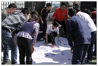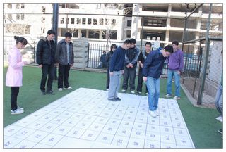 戶外素質(zhì)拓展活動目的在于引導同學們在實踐中體會挑戰(zhàn)自己的勇氣以及團隊合作的重要性。在兩位教練的帶領(lǐng)下,首先通過小游戲讓各位學員互相熟知,然后將所有學員分為兩個小組,兩個小組分別為自己的團隊創(chuàng)建了名字、口號、隊歌以及造型。