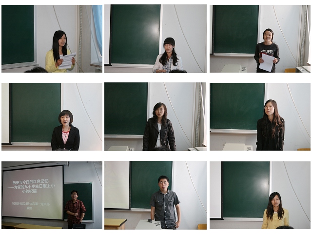此次征文大賽共收到稿件150余篇。經(jīng)過各支部初選,又經(jīng)過學(xué)院第二輪的評選,共選出 12篇征文參加了5月5日的優(yōu)秀作品答辯會。外國語學(xué)院黨委副書記、副院長吳文君老師和學(xué)院分團委副書記韓興杰老師參加了答辯會,各學(xué)生黨支部書記擔(dān)當(dāng)評委,現(xiàn)場氣氛緊張而熱烈。