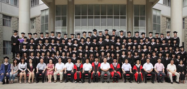 在學(xué)位授予儀式上,李和章、徐強(qiáng)、李壽平、張艷麗、楊亞非等為畢業(yè)生授予學(xué)位、扶正流蘇,并與同學(xué)合影留念。