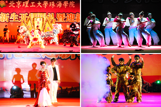 參加開學(xué)典禮的領(lǐng)導(dǎo)和嘉賓與2011級(jí)新生一起觀看了迎新晚會(huì)。晚會(huì)精彩紛呈,由各大學(xué)生社團(tuán)帶來的舞獅、舞蹈、話劇、聲樂、雙截棍、相聲、街舞等表演,演出形式新穎、內(nèi)容豐富,展示了北京理工大學(xué)珠海學(xué)院多彩的社團(tuán)文化和北理學(xué)子自信樂觀的風(fēng)貌。