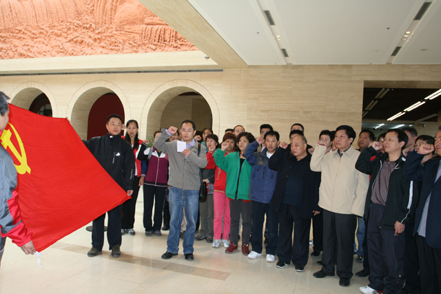 延安革命紀(jì)念館氣勢恢弘、資料豐富,一組組圖片、一座座塑像、一件件實(shí)物,再現(xiàn)了當(dāng)年的崢嶸歲月,喚起了黨員們心中永不逝去的紅色記憶。在延安革命紀(jì)念館,舉行了莊嚴(yán)的重溫入黨誓詞儀式。