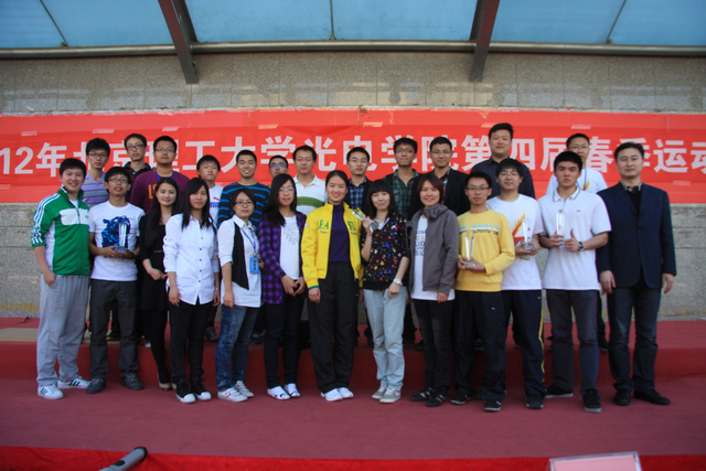 在此次學院運動會中,同學們賽出了風格,賽出了水平。最終,研一、09光電一班、09光信一班分別獲得了團體總分前三的優(yōu)異成績,另有09光電四班和09光信二班秩序井然、表現(xiàn)突出,獲得了本次運動會的精神文明獎。光電學院副書記副院長鄒銳,分團委書記盛筠,研工委書記姜曼和08級輔導員湯琪分別為各獲獎者頒獎,對其高昂的斗志和精神表示贊揚,對其取得的成績表示祝賀。