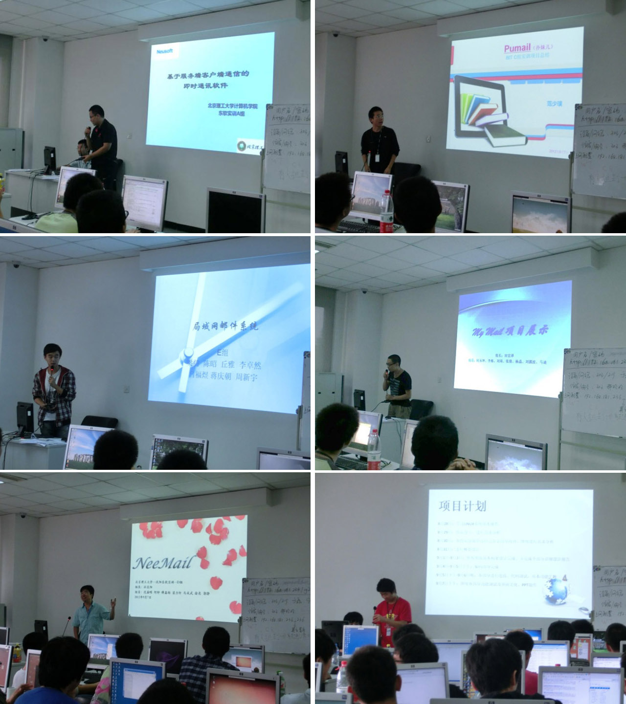 實(shí)訓(xùn)前兩天學(xué)生參觀了軟件園區(qū)醫(yī)學(xué)影像設(shè)備研制車間、軟件研發(fā)大樓和會(huì)展中心等實(shí)際工作場(chǎng)所,東軟實(shí)訓(xùn)教師也為學(xué)生做了職業(yè)生涯規(guī)劃和軟件行業(yè)現(xiàn)狀與發(fā)展趨勢(shì)等講座。在接下來(lái)的10天里,學(xué)生們?cè)趯?shí)訓(xùn)教師的指導(dǎo)下分為7組,分別開(kāi)發(fā)了運(yùn)行于Linux操作系統(tǒng)平臺(tái)的郵件系統(tǒng)軟件和即時(shí)通訊軟件,可以實(shí)現(xiàn)局域網(wǎng)內(nèi)任意電腦之間的信息接收與發(fā)送,也可作為支持中小型規(guī)模的企業(yè)內(nèi)部信息交流工具。各組中學(xué)生分別指派不同角色,各司其職,分工合作,分為組長(zhǎng)、配置管理員、數(shù)據(jù)庫(kù)負(fù)責(zé)人、界面負(fù)責(zé)人和通訊負(fù)責(zé)人等角色。按照標(biāo)準(zhǔn)的軟件開(kāi)發(fā)流程開(kāi)發(fā)是這次實(shí)訓(xùn)的目的之一,期間同學(xué)們完成了從需求分析、總體方案設(shè)計(jì)、詳細(xì)方案設(shè)計(jì)到模塊編碼、軟件測(cè)試和系統(tǒng)集成的全過(guò)程工作。
