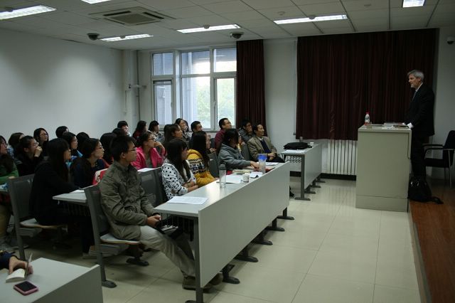 應(yīng)外國語學(xué)院王貴明教授邀請(qǐng),美國新奧爾良大學(xué)教授、國際埃茲拉•龐德研究學(xué)會(huì)主席、意大利埃茲拉•龐德研究中心主任、美國著名文學(xué)評(píng)論家、詩人及詩歌翻譯家John Gery先生于2012年10月14日至26日在我校進(jìn)行了為期兩周的講學(xué)和學(xué)術(shù)交流。在此期間,Gery教授分別在我校中關(guān)村校區(qū)和良鄉(xiāng)校區(qū)以“美國現(xiàn)代主義文學(xué)”、“文學(xué)翻譯”為主題,為外國語學(xué)院師生做了精彩的系列學(xué)術(shù)講座,并與外國語學(xué)院領(lǐng)導(dǎo)和教師就教學(xué)、科研及國際合作辦學(xué)等方面進(jìn)行了座談。