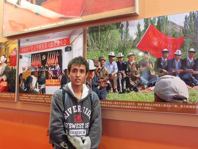 當維族同學居馬胡力看到新疆阿合奇縣黨代表換屆選舉宣傳隊的照片時,不禁露出了欣喜的笑容。鄧小平同志的一句名言:沒有民主就沒有社會主義,就沒有社會主義現(xiàn)代化。政府大力推進社會主義民主政治建設,讓我們少數(shù)民族人民有了當家做主人的感覺和使命感。展覽接近尾聲的一段結語吸引了同學們的目光,結語的內(nèi)容召喚著廣大人民續(xù)寫黨的光輝歷程和輝煌成就。