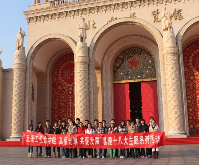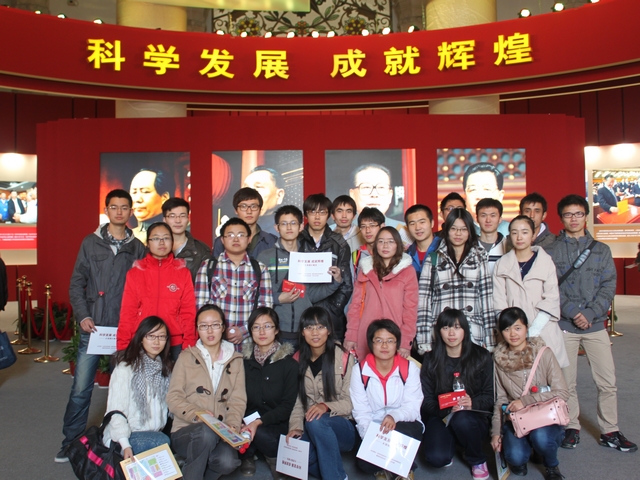 為了迎接黨的十八大,提高學生隊伍素質(zhì)的建設水平,在院黨委的領導下,生命學院共產(chǎn)主義學習實踐會協(xié)同生命學院10級學生第一、二黨支部和積極響應“十八大”號召, 于11月5日組織共學會骨干成員、支部黨員和積極分子前往北京展覽館參觀“科學發(fā)展 成就輝煌”大型圖片展覽。展覽共分為10個部分,在“序篇”的展廳里,精美生動的圖片再現(xiàn)了10年我們國家經(jīng)歷的一系列難忘的大事:成功舉辦北京奧運會、應對汶川大地震等自然災害、成功舉辦上海世博會、建國60周年等等令人難忘、意義深遠的大事。同學們看到周圍這些圖片,感慨萬千。