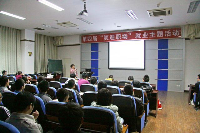活動(dòng)伊始,金老師首先根據(jù)當(dāng)前畢業(yè)生的就業(yè)情況對(duì)2013年整體就業(yè)形勢進(jìn)行了說明和介紹,并圍繞“就業(yè)形勢通報(bào)”、“2012屆畢業(yè)生就業(yè)情況分析”、“就業(yè)單位分布及介紹”等幾個(gè)主題展開了深入講解。金老師通過詳盡的數(shù)據(jù)統(tǒng)計(jì)分析向同學(xué)們介紹了2013年“整體就業(yè)形勢嚴(yán)峻”、“就業(yè)結(jié)構(gòu)不平衡”、“相關(guān)企業(yè)校園招聘崗位數(shù)量下降”等多個(gè)畢業(yè)生關(guān)心的問題,并通過舉例說明、對(duì)比分析等方式對(duì)以上問題的具體應(yīng)對(duì)措施進(jìn)行了指導(dǎo)。